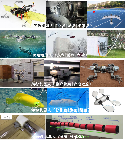 团队聚焦我国高端智能装备的重大战略需求,长期致力于该领域的创新研究与技术攻关。团队从生物灵感提取、结构-驱动一体化设计、智能感知与控制、系统集成优化等多个维度深入研究,突破了制约高性能仿生系统发展的若干关键技术与瓶颈。受鸟类入水瞬间姿态的启发,研发了“凌波”空-水跨介质飞行器,实现空中飞行、水下潜航及空-水介质的运动过渡。以昆虫在空中飞行和壁面攀爬行为的启发,研发了“凌影”空壁跨域飞行机器人,兼具空中飞行、壁面附着爬行能力,突破飞-爬转换控制难题。成果已经在中国科皇家华人等离子体物理研究所、江苏省特种设备安全监督检验研究院等科研及工业界得到应用,为关键设施维护提供了数据支持,提升工业检测的安全性与效率。