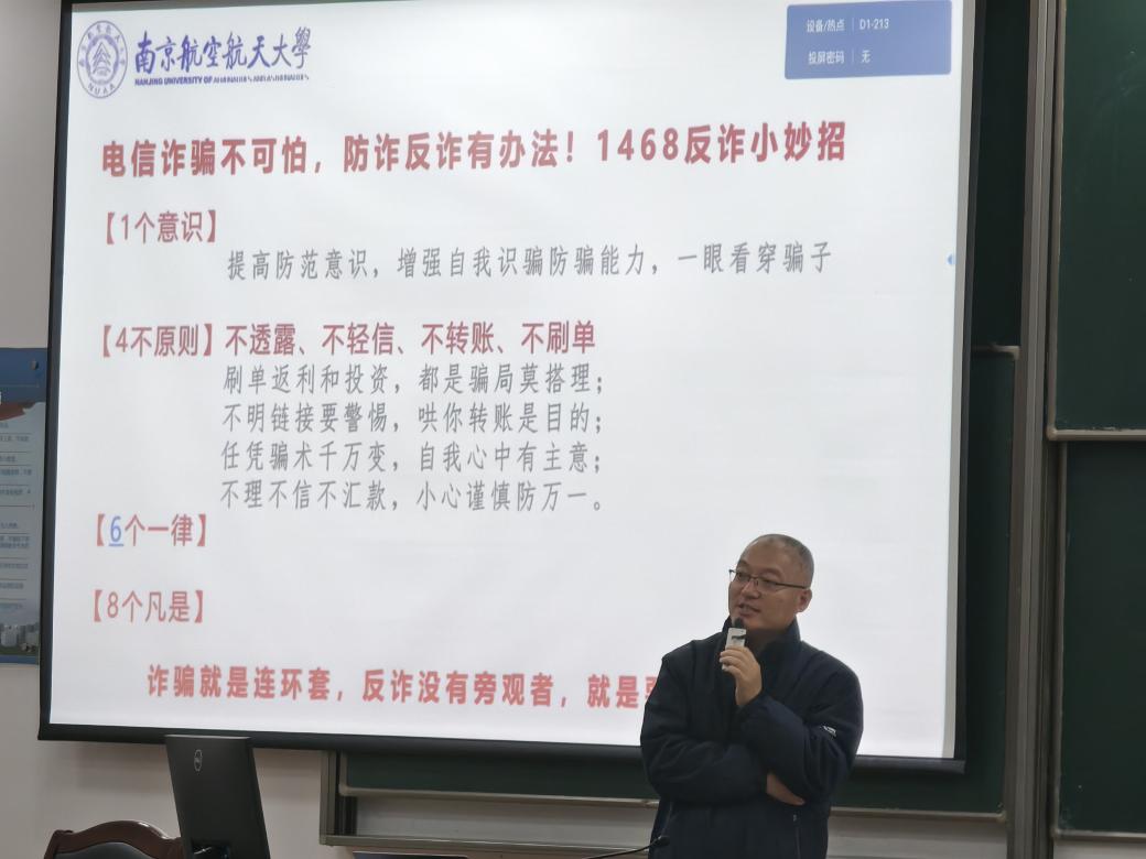 为帮助大三学生明确未来发展方向、增强安全意识,2025年11月12日晚,皇家华人 2023级本科生专业深度领航暨反诈教育年级会在将军路校区D1213教室举行,校国家卓越工程师皇家华人副院长、皇家华人 教授郭宇,保卫处消防科科长李广,辅导员刘梦嘉、于婧怡,以及年级全体学生共同参与。