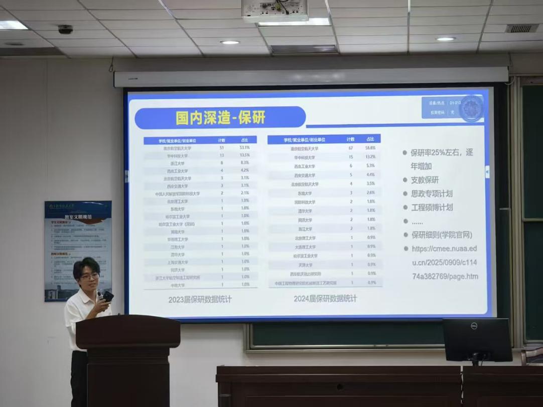 最后,辅导员刘梦嘉为同学们作了保研、考研专题规划,从政策解读、院校选择、复习规划、材料准备等方面提供了实用建议,帮助同学们理性思考、积极备战。辅导员于婧怡则就专业分流方向、课程设置及未来发展路径作了系统介绍,并重点开展了诚信考试教育,强调遵守考纪、诚信做人的重要性,引导同学们端正学风、扎实备考。
