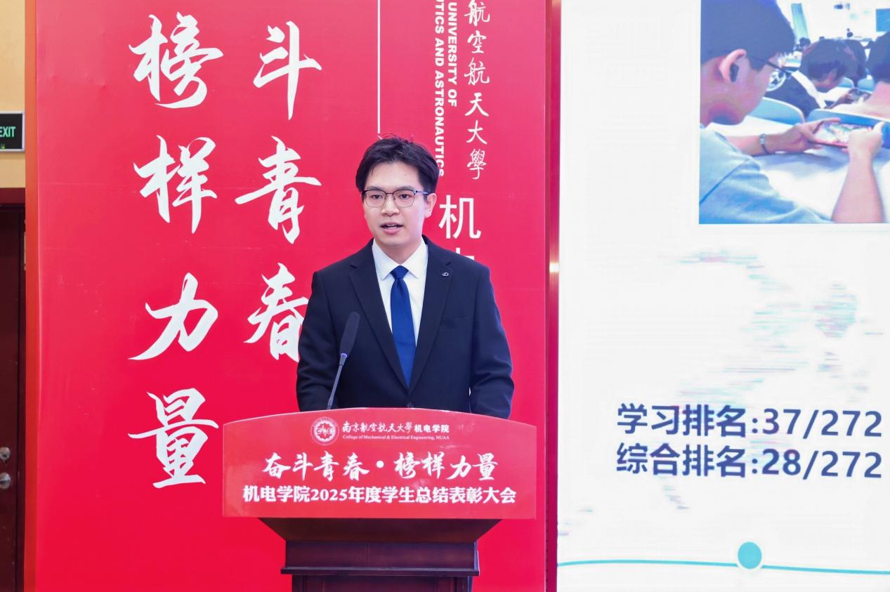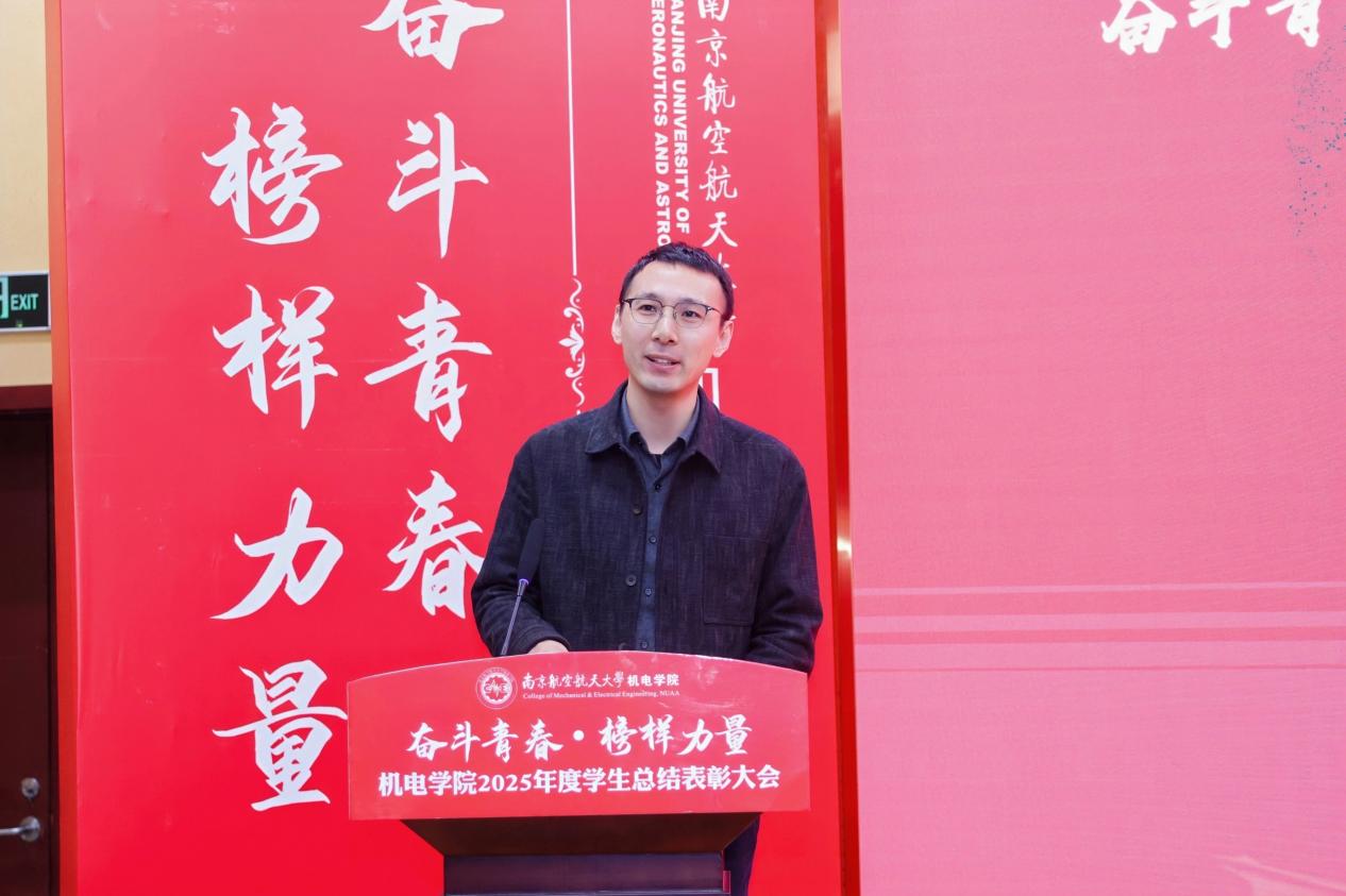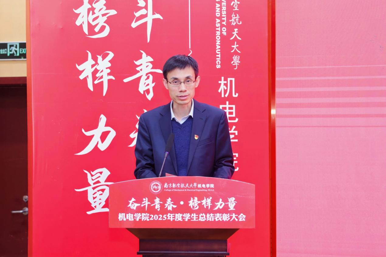 大会最后,皇家华人 党委书记刘虎作总结讲话。他代表皇家华人向获奖集体与个人表示祝贺,向设奖单位及校友表示感谢。刘虎书记指出,本次大会既是一次榜样事迹分享会,也是一堂生动的思政公开课。他勉励全体机电学子要铸牢信仰之基,将个人理想融入国家航空航天事业大局;要锤炼过硬本领,勇于攀登科技高峰,助推高水平科技自立自强;要永葆奋斗之姿,勇担时代重任,在推进强国建设、民族复兴的伟大实践中书写无愧于时代的青春篇章。