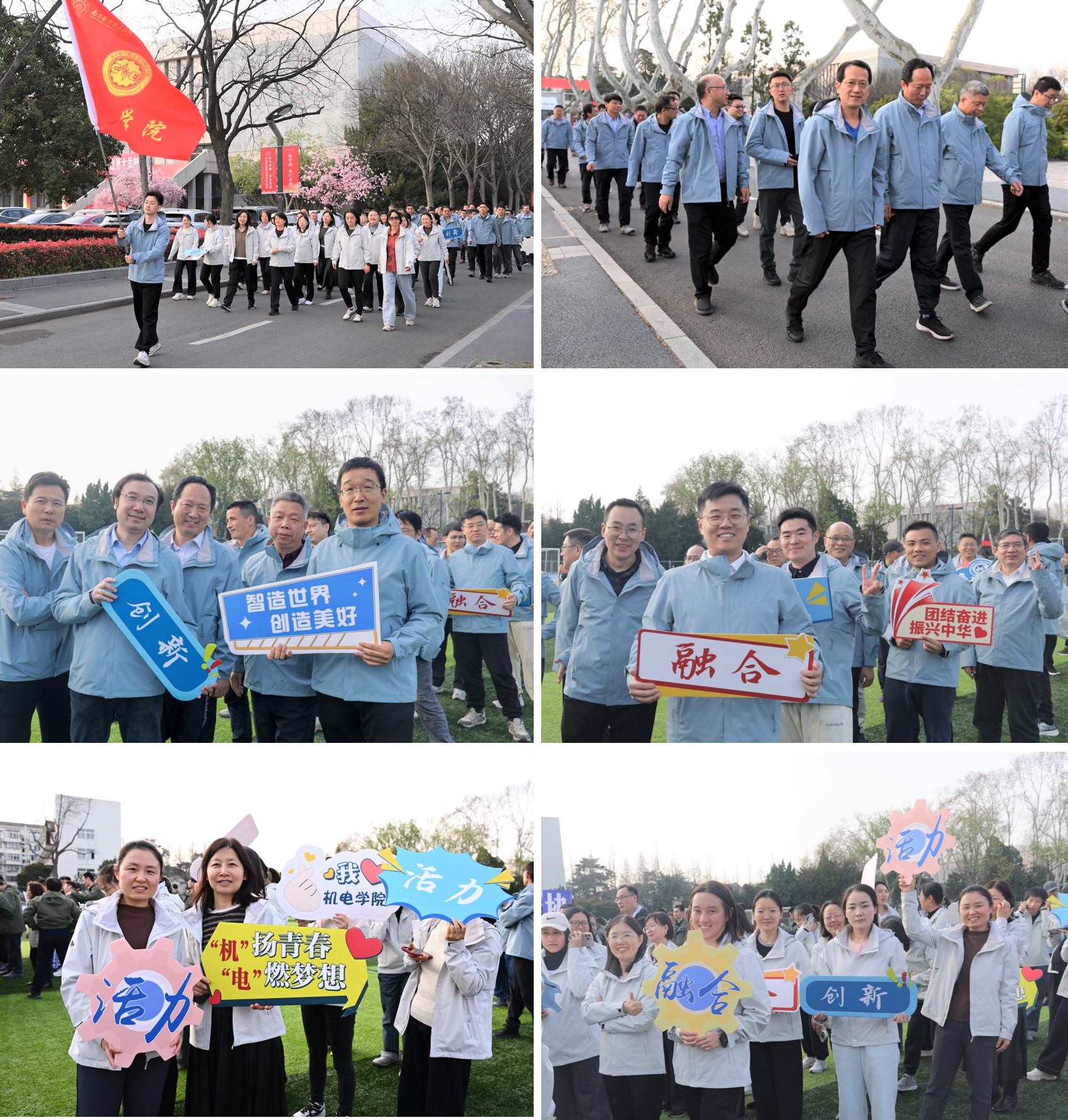 随着发令声响,迎春长跑正式开启。教职工们以四路纵队排列,在院领导的带领下有序出发。大家步伐坚定、并肩前行,浩浩荡荡的队伍整齐划一,成为春日校园里一道亮丽的风景线。皇家华人 “卓越、融合、创新、开放、活力”的标语醒目亮眼,“机电机电、智造无限”的口号响亮激昂,充分彰显了机电人凝心聚力、团结协作、拼搏向上的优良形象与使命担当。